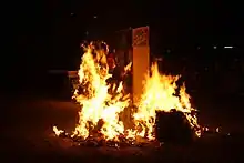 In the days before the festival the villagers collect all that's combustible (wood, hay, paper etc.), and put a pyre together. After a procession through the village street, the Giubiana is placed on the pyre and set on fire. The rite is both symbolic and propitiatory. The Giubiana is burnt to ashes to terminate the winter, so that the pyre flame is believed to predict an abundant harvest in the upcoming year.