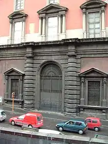 In 1612 viceroy Pedro Fernández de Castro, count of Lemos, commissioned him to convert the former cavallerizza into the Palazzo dei Regi Studi, which now houses the Museo Archeologico Nazionale di Napoli - nel frattempo operò nella sistemazione dei Regi Lagni. Around the same time he designed the grain pits in Largo Mercatello (now Piazza Dante) in Naples and worked on the Regi Lagni. In 1626 he designed the portale dell'Annunziata gateway in Aversa, took part in completing the oratory of San Carlo Borromeo near the church of Sant'Anna dei Lombardi - that church also contains the funerary monument to Domenico Fontana, designed by Giulio Cesare in 1627 but badly damaged during World War Two.[2]