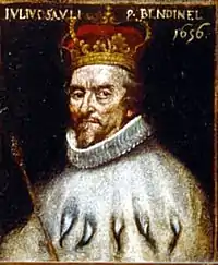 A native of Genoa, in 1578 and exponent of the Lucchese Sauli family, he completed his studies in law in the Genoa which subsequently took him to various European countries such as France, Spain, the Swiss Confederacy and Flanders for further study. Back in the Genoese Republic, Giulio Sauli was involved in a judicial process for the public possession of a gun; despite being part of the nobility, he was sentenced to exile from Genoa for five years, a sentence he served in the island colony of Corsica.[1]
