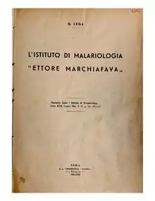 The Institute Ettore Marchiafava was born as an evolution of the Superior School of Malariology, established in Rome in 1925 as an output of the international Congress of malaria. The school was established with the aim of Promoting studies and training on all the medical problems related to malaria and on the reclamation and on the cultivation of marshy areas.[6]