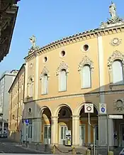 Giuseppe Jappelli (14 May 1783 – 8 May 1852) was an Italian neoclassic architect and engineer who was born and died in Venice, which for much of his life was part of the Austrian Empire.[1] He was the youngest of nine children born to Domenico Jappelli and cousin to Luigi Jappelli, a painter and interior decorator.[2] He studied at the Clementine Academy in Bologna. In 1836–7, he traveled to France and England, an experience that would be formative on his career as a park architect. His best-known work is the Pedrocchi Café in Padua. Among his other projects are: