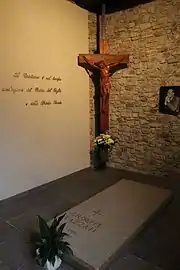 Lazzati died in Milan in mid-1986 at Pentecost at the Capitanio Clinic.[1] In 1984 doctors had diagnosed him with an incurable intestinal tumor and had to operate on him to alleviate the pain.[3] He was hospitalized during the morning of 27 March 1986 - Holy Thursday - and he received a phone call from Pope John Paul II. He was hospitalized once again two months later at the Capitanio Clinic and on 14 May his priest friend Giuseppe Grampa celebrated Mass for him at his bedside and gave him the Anointing of the Sick.[1] His institute still exists and operates across the globe in places such as New Zealand and Uganda. Since September 1988 his remains have been housed at the San Salvatore Hermitage.[2]