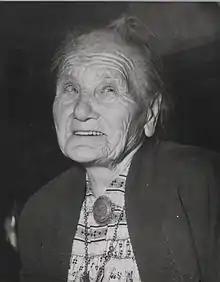 Kaia Gjendine Slålien (1871–1972) was a Norwegian dairy maid and folk singer who inspired Edvard Grieg and his friends with her folk songs. They first visited her in 1891 at Skogadalsbøen, her mountain homestead in Vestland, returning on several occasions. Grieg's lullaby "Gjendines bådnlåt" was included in his Opus 66 "19 Norwegian Folk Songs".[1] Gjendine Slålien became increasingly famous as she grew older, receiving visits from Queen Wilhelmina of the Netherlands, with whom she maintained a correspondence. On the occasion of her 90th birthday, she was invited to the Bergen Festival where she met King Olav.[2][3][4]