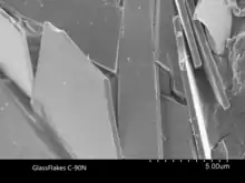 Glass flakes are extremely thin glass plates with an average thickness of 5 ± 2 micrometers.[1]