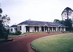 The eastern garden, set out in the gardenesque style, continues this more formal thematic planting. The trees and shrubs in this area are an eclectic mix of species is typical of late 19th century and early 20th century botanical collections. A rose garden has been established east of the homestead and adjacent to this older formal garden. The eastern lawn contains further planting of jacaranda (Jacaranda mimosifolia) and other associated species. The old stunted macadamia nut tree (Macadamia integrifolia) is located south-east of the homestead and is a rare specimen planting in this district.[1][11][12][13]