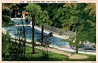 The surrounding property and spring were purchased by Gainesville businessman Cicero Addison Pound Sr. in 1924. Architect Guy Fulton designed the first pool and springhouse which was built soon after.[2][4][5][7] The swimming team from the University of Florida even practiced there around 1929[4] before the university pool was constructed in 1930. At that time, Northwest 23rd Boulevard was known as Glen Springs Road.[5] Pound's son stated that Glen Springs was the “only (public) place to swim near Gainesville”[2] until the pool at Westside Park was completed in 1966.[2] Glen Springs was, however, a segregated swimming area, open only to whites.[8][9][10]