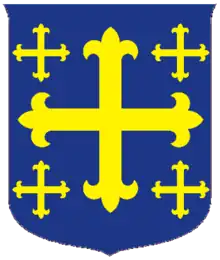 | Blazon | Azure a cross flory between four like crosslets Or. |