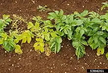 Globodera pallida is a species of nematode in the family Heteroderidae. It is well known as a plant pathogen, especially of potatoes. It is "one of the most economically important plant parasitic nematodes," causing major crop losses, and is a model organism used to study the biology of cyst nematodes.[1] Its common names include potato cyst nematode, white potato cyst nematode, pale potato cyst nematode, potato root eelworm,[2] golden nematode,[3] and pale cyst nematode.[4]