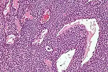 A glomus tumor (also known as a "solitary glomus tumor"[1]) is a rare neoplasm arising from the glomus body and mainly found under the nail, on the fingertip or in the foot.[2]:670 They account for less than 2% of all soft tissue tumors.[3] The majority of glomus tumors are benign, but they can also show malignant features.[4] Glomus tumors were first described by Hoyer in 1877 while the first complete clinical description was given by Masson in 1924.[5]