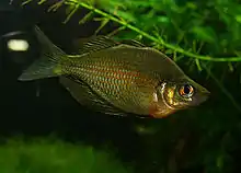 The Lake Wanam rainbowfish (Glossolepis wanamensis) is a critically endangered species of rainbowfish in the subfamily Melanotaeniinae. It is endemic to Lake Wanam near Lae in Papua New Guinea. It has virtually disappeared from the small lake (2–3 km in diameter) due to competition from introduced, non-native tilapias, but captive populations exist.