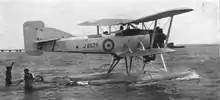 The Goring[1][2] was a single bay biplane with staggered wings of unequal span and slight sweep. They were based on spruce spars with internal wire bracing. The lower wing was angled downwards briefly as it left the fuselage, enabling a shorter-than-usual undercarriage. Short struts ran from the wing joint of this centre section to mid-fuselage. The fuselage was also a wooden structure of rectangular cross-section formed by ash longerons. Wings and fuselage were fabric covered. The pilot sat below the upper wing trailing edge with a cutout for visibility. The gunner sat behind in a second open cockpit fitted with a Scarff ring for a Vickers machine gun. The rear cockpit also allowed the gunner to assume a prone position for bombing. The tailplane was strut braced and the fin was low with a broad chord. Both rudder and elevators had horn balances which projected beyond the fixed surfaces. The standard undercarriage was a simple single axle arrangement, but it could be replaced with a split axle unit to allow the carrying and dropping of torpedoes. In addition the Goring could operate as a seaplane. The floats were accompanied by a rudder enlarged by an extension below the fuselage.[1]