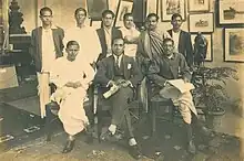 Gobardhan Ash had initially joined the Government College of Art, Kolkata as a student in 1926.[10] He lost his scholarship at the school due to his involvement with the civil disobedience movement in 1930's.[11] Differences with the teaching methods and an open skirmish with the then principal Mukul Dey ultimately led to the formation of a group called the Young Artist's Student Union in 1931[12] and the Art Rebel Center.[13][14] He subsequently studied under Devi Prasad Roy Chowdhury at the Government Art School in Madras.[15]