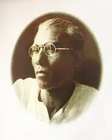 Gobardhan Ash (5 August 1907 - 22 December 1996) was an Indian artist and an early modernist as per the art critic Sovom Som.[1][2][3][4] Ebrahim Alkazi[5] states that "Gobardhan wielded considerable influence as an artist in the 1940s". He co-founded the Art Rebel Center in 1933 and was a member of the Calcutta Group. He was mentored by and close to the artist Atul Bose.[6] Gobardhan was employed as the Chief Artist at the Indian Institute of Arts and Industry in Kolkata in 1946 for a period of two years and subsequently employed from 1953 as a Senior Teacher at the Indian Art School of Kolkata.[7][8] Ranjit Hoskote specifically identifies Gobardhan's 1948 - 1951 period wherein Gobardhan "focusses on creating a style similar to various idioms within pattachitra into a consciousness that is clearly aware of cinema and animation".[9]