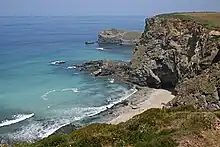 Scarlet and gold star coral are present within the rocky intertidal shores, rare for the Cornish coast; with grey seal (Halichoerus grypus) having breeding sites within the inaccessible sea caves. The rest of the cliffs, along with the offshore islands, are an important breeding site for a variety of seabird species and are home to the largest Cornish breeding colony of black-legged kittiwake (Rissa tridactyla), with 1000–5000 birds being recorded in the area.[1][6]