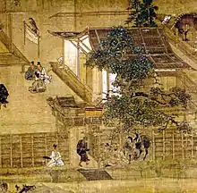 The terms gokenin and kenin are etymologically related but have very different meanings. Confusion can arise also because in documents sometimes this last word is used together with the honorific -go (御) prefix (go + kenin).[4] Under the ritsuryō legal system in use in Japan from the seventh to the tenth century, a kenin ("house person") was a human being who, while legally property of a family, could be inherited but not sold and, unlike a slave, had some rights.[1] For example, the inventory of a temple's wealth mentions thirteen kenin, among them four women, who were in effect servants.[5]