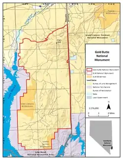 - ↑ New Gold Butte National Monument preserves culture and wildlands Archived December 4, 2017, at the Wayback Machine, Wilderness Society (accessed January 6, 2017).