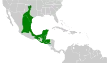 The golden-fronted woodpecker is found from southwestern Oklahoma through central Texas onto the Mexican Plateau as far as Jalisco, San Luis Potosí, and Hidalgo. It is a casual visitor to New Mexico and has strayed further north and east. It inhabits both mesic and xeric landscapes. It favors the latter, which include mesquite brushlands and riparian woodlands. It also frequents urban parks and suburban areas.[7][8]