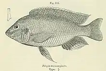The golden-margined hap (Otopharynx auromarginatus) is a species of cichlid native to Lake Malawi as well as the upper Shire River. This species can reach a length of 24.5 centimetres (9.6 in) TL. This species can also be found in the aquarium trade.[2]
