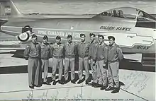 - ↑ Villeneuve and F/O Price both had to leave the team because the Golden Hawks had a rule of three years for single men, max two years for married men, since the schedule was hard on their families.