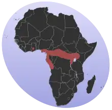 Goldie's tree cobra can be found in Central and Western Equatorial African countries, including Angola, Burundi, Cameroon, Central African Republic, Democratic Republic of the Congo, Republic of Congo, Equatorial Guinea, Gabon, Ghana, Ivory Coast, Kenya, Nigeria, Rwanda, and Uganda.[1][2]