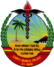 Gomal Medical College (Urdu, Saraiki: گومل طبی کالج, Pashto: د ګومل طب پوهنځی), or GMC, is a public medical institute located in Dera Ismail Khan, Pakistan. It is one of the newer generation of medical colleges in the public sector that were set up by the government in the 1990s to meet the ever-growing demand for health service providers in the Pakistan.It started functioning in 1998 and now has grown into an established seat of medical learning in the region. It was initially affiliated with the University of Peshawar, which has been the premium public sector university in the province of Khyber-Pakhtunkhwa since 1952. Now it is affiliated with the Khyber Medical University.