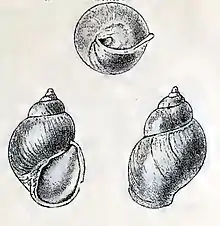 | Original drawing with three views of a shell of Goodingia varicosa | |