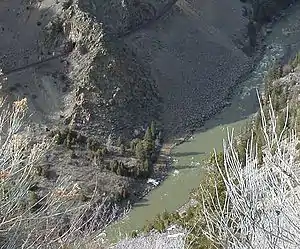 The canyon is home to pronghorn,[2] bald eagles,[3] and the Colorado River hosts varieties of trout.[4] In 2009, a small herd of bighorn sheep were released in Gore Canyon by the Colorado Parks and Wildlife. This added to an existing herd to help boost the population after declines due to competition with domestic animals, hunting, and disease.[5]