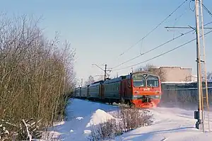 The Gorkovsky suburban railway line or Gorkovskoye line[1] (Russian: Горьковское направление Московской железной дороги) is one of eleven suburban railway lines used for suburban railway connections between Moscow, Russia, and surrounding areas, mostly in Moscow Oblast. The Gorkovsky suburban railway line connects Moscow with the station in the east, in particular, with the towns of Reutov, Balashikha, Elektrougli, Elektrostal, Noginsk, Pavlovsky Posad, Elektrogorsk, Orekhovo-Zuyevo, Pokrov, Petushki, Kosteryovo, Lakinsk, and Vladimir. The stations the line serves are located in Moscow, as well as in the towns of Reutov, Balashikha, Elektrogorsk, Elektrostal, Noginsk, Pavlovsky Posad, and Orekhovo-Zuyevo in Moscow Oblast, as well as in Petushinsky District, Sobinsky District, and the city of Vladimir of Vladimir Oblast. The suburban trains have their western terminus at Moscow Kursky railway station in Moscow. In the eastern direction, the suburban trains terminate at Balashikha, Zheleznodorozhnaya, Kupavna, Fryazevo, Zakharovo, Elektrogorsk, Petushki, and Vladimir.[2] The line is served by Moscow Railway between Moscow and Petushki and by Gorky Railway between Petushki and Vladimir. The suburban railway line follows the railway which connects Moscow with Nizhny Novgorod (formerly Gorky, hence the name) via Vladimir. It is fully electrified. Between Moscow and Vladimir, there are two tracks.[3] The distance between Moscow Kurskaya railway station and Vladimir is 190 kilometres (120 mi).