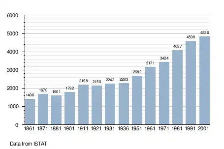 - ↑ "Popolazione Residente al 1° Gennaio 2018". Italian National Institute of Statistics. Retrieved 16 March 2019.