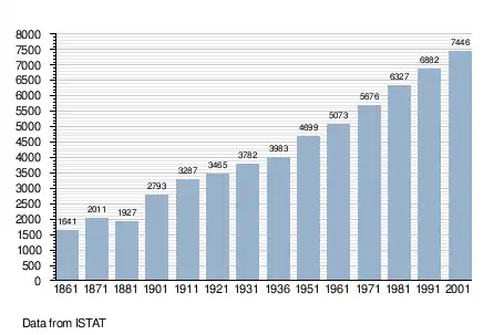 - ↑ "Popolazione Residente al 1° Gennaio 2018". Italian National Institute of Statistics. Retrieved 16 March 2019.