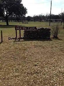 Hulen Park sign behind the home plate at the former Gorman's Park