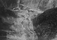 Göschenen locally [ɡɔʊʃɛnɛn] (German, Italian: Casinotta, Romansh: Caschanuttais) is a village and municipality in the canton of Uri in Switzerland. It sits at the northern end of the Gotthard tunnel. The Göschenen riots (1875) saw Urner troops opening fire on Italian miners demonstrating for better working conditions and wages on the tunnel's construction site.[3]