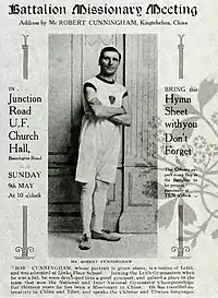 Two years later (1907), Robert Cunningham (Chinese name: 顧福安; 1883–1942), a Scottish ex-gymnast turned missionary, was sent to Kangding by CIM as Edgar's assistant, who was going to serve as the pastor of the church until his death in 1942. 'Even the Archbishop of Canterbury can not dwell in contemplation and prayer day and night', Cunningham introduced some Western games to the Tibetans, tiddlywinks, ludo, halma and snap, the remit is to 'evangelise in an entertaining way'. He also published numerous articles on the study of Khams Tibet in The West China Missionary News and Journal of the West China Border Research Society.[4]