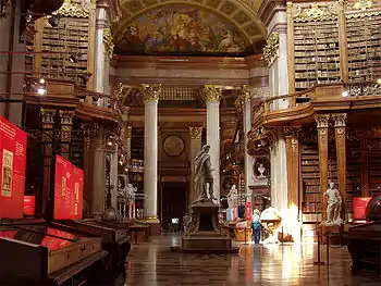 Van Swieten also expanded the library's collection, notably with books on science, as well as older books from the libraries of monasteries that had been dissolved under the decrees of Emperor Joseph II.[11]