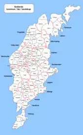 Sockens on Gotland. The sockens are written in small text, the bolder names are the names of the municipalities existing 1950–1970.