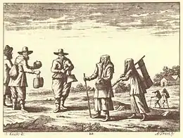 Gottschee German peasants in an engraving from Johann Weikhard von Valvasor's work The Glory of the Duchy of Carniola, 17th century