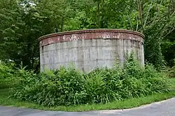 The Gould Jones Reservoir is a historic water storage tank, located on the grounds of the Newton County library, which was then just outside of Jasper, Arkansas on Arkansas Highway 7. The tank is a circular masonry structure, built out of concrete and brick in 1942 by Gould Jones, a local blacksmith and mason. It was built to provide water to a local tomato canning factory, and to provide water to the community of Jasper.[2]