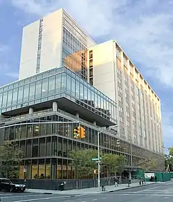 In 1959, Gouverneur lost its accreditation, and the hospital closed about a decade later. It was replaced by a new Gouverneur Hospital at 227 Madison Street,[11] which formally opened on September 21, 1972. A 14-story, 216-bed hospital with an emergency room and outpatient clinics, the new building served Little Italy, Chinatown and the Lower East Side. Professional services at Gouverneur were initially provided by Beth Israel Hospital, through the New York City Health and Hospitals Corporation (HHC). The HHC took over the municipal system in 1970, and Gouverneur was the first new institution opened by the HHC.[10]