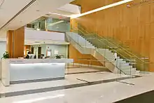 Renovations of The Center for Community Health and Wellness, an ambulatory care pavilion that serves over 345,000 outpatient visits per year, include a newly renovated 30,000-square-foot Women and Children's Center; a new digital radiology center; on-site pharmacy; and laboratory services.[2] Specialty services include prenatal care, rehabilitation, and a new 16-chair dental suite.[7] The building is glass and steel, wrapped around red brick,[7] an open and inviting style with much natural light.[8]