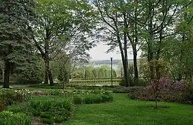 The history of this park goes back at the very start of the French regime in 1633, when Louis d'Ailleboust de Coulonge, third governor of New France, occupied it.[4][5] This estate and several other properties of the governor became one large estate (much larger than today’s park) on 9 April 1657 and was named the châtellenie of Coulonge.[4][5] It was after his death that the estate was sold to the sisters of the Augustine order the Hôtel-Dieu, and on 12 May 1676, the Quebec Seminary acquired the property.[4][5]