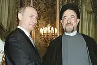 As President, Khatami met with many influential figures including Pope John Paul II, Koichiro Matsuura, Jacques Chirac, Johannes Rau, Vladimir Putin, Abdulaziz Bouteflika and Hugo Chávez. In 2003 Khatami refused to meet militant Iraqi cleric Moqtada al-Sadr.[7]