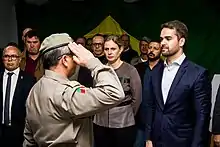 It is up to the governor to appoint the occupants of various positions. In 2016, the state executive had 1,941 employees in commissioned positions, a legal regime that allows the governor to freely hire and fire their holders. That year, the governor's office had 75 commissioned positions.[23] The governor appoints, through a triple list submitted by the Court of Justice, the judges, and chooses the members of the Court of Auditors.[24][25][6] As supreme authority of the Military Brigade, Civil Police and Fire Brigade, he has the power to dispose of positions and appoint senior officers.[26][7][6]