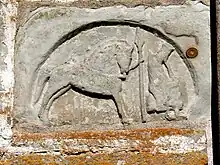 The southern façade is adorned with elements of a Romanesque frieze, made by the artist commonly referred to as Sigraf and dating from circa 1200. They depict animals, both real and mystical, as well as fighting men and knights on horseback. Scholars are divided as to what they may depict. Some speculate that they may be an illustration of evil forces, pursuing humans. Others argue that they may be illustrating an ancient tale, perhaps that of Beowulf.[1][4]