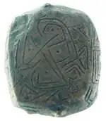 The Gradeshnitsa tablets (Bulgarian: Плочката от Градешница) or plaques are clay artefacts with incised marks. They were unearthed in 1969 near the village of Gradeshnitsa in the Vratsa Province of north-western Bulgaria. Steven Fischer has written that "the current opinion is that these earliest Balkan symbols appear to comprise a decorative or emblematic inventory with no immediate relation to articulate speech." That is, they are neither logographs (whole-word signs depicting one object to be spoken aloud) nor phonographs (signs holding a purely phonetic or sound value)."[1] The tablets are dated to the 4th millennium BC and are currently preserved in the Vratsa Archeological Museum of Bulgaria.[2]