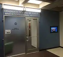 The Graduate School of Public and International Affairs (GSPIA) is one of 17 schools comprising the University of Pittsburgh. Founded in 1957 to study national and international public administration, GSPIA prides itself on its "Local to Global" distinction.[1] As of 2018, it is one of only two policy schools with programs in the top 20 for both International Relations (Foreign Policy, 2015[2]) and City Management and Urban Policy (U.S. News & World Report, 2018[3]). The former mayor of Pittsburgh, Bill Peduto, is a GSPIA alumnus.[4]