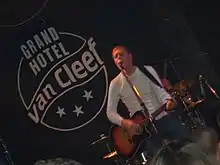 Grand Hotel van Cleef was founded in September 2002 by the musicians Thees Uhlmann, Marcus Wiebusch and Reimer Bustorff. The newly formed band of Bustorff an Wiebusch Kettcar had recently recorded their first album, Du und wie viel von deinen Freunden, (engl.: You and how many of your friends) but they found no label to release it. In addition, it was clear that Uhlmann's band Tomte would release their third album Hinter all diesen Fenstern (engl.: Behind all these windows). The big fan base even before the publication was ultimately the deciding factor to start the label. The name originated from a joke: On Thees Uhlmann's question on how to call the label, Tomte's ex-drummer Timo Bodenstein said "Hotel van Cleef" - he was working in the restaurant business, and it should be called something with gastronomy. So they decided to call Tomte's label Hotel van Cleef. Due to the merger with Marcus Wiebusch's B.A. Records, it was renamed to Grand Hotel van Cleef. In 2004 the musicians Thees Uhlmann, Marcus Wiebusch, Felix Gebhard and Max Schroeder, who were all signed to Grand Hotel Van Cleef, wrote the soundtrack for the film No Songs of Love, Hansen Band. Actor Jürgen Vogel contributed in the songwriting. The label's biggest chart success was the publication of Buchstaben über der Stadt by Tomte and Thees Uhlmann's solo debut album, both on fourth place. and the publications Von Spatzen und Tauben, Dächern und Händen and Sylt by the band Kettcar, each of which reached the fifth place. This success was topped by Kettcar's latest Release Ich vs. Wir (engl.: Me versus Us) that could reach the fourth place in the German music chart. Hansen Band and Young Rebel Set, Kilians and Fjørt also released albums that could enter the German music chart.[1]