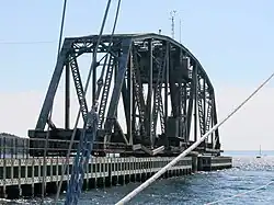 The Grand Narrows Bridge is a Canadian railway bridge crossing between Victoria County, Nova Scotia, and Cape Breton County. At 516.33 m (1,694 ft), it is the longest railroad bridge in the province.[1] The bridge incorporates a swing span at its eastern end to permit the continued passage of marine traffic through the strait.