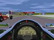 The game had multiple camera angles, including a simulated TV coverage angle. The player can control their car from any of them, but the primary angle used was the first-person cockpit angle.