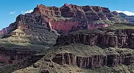Grand Scenic Divide is a 5,667-foot-elevation (1,727-meter) ridge located in the Grand Canyon, in Coconino County of northern Arizona, Southwestern United States.[2] It is situated immediately north of Fossil Mountain, and 1.5 mile east of Mount Huethawali. Surrounded by Bass and Serpentine Canyons, topographic relief is significant as it rises over 3,400 feet (1,000 meters) above the nearby Colorado River in 1.5 mile. It is composed of strata of the Pennsylvanian-Permian Supai Group. Further down are strata of the cliff-forming Mississippian Redwall Limestone, and Cambrian Tonto Group.[3] According to the Köppen climate classification system, Grand Scenic Divide is located in a cold semi-arid climate zone.[4] The normal approach to the ridge is made via the South Bass Trail, and from the top the view includes Masonic Temple, Holy Grail Temple, Dox Castle, King Arthur Castle, Evans Butte, Sagittarius Ridge, and Scorpion Ridge.