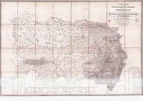 Later, it was divided into five districts[10][11] (contemporary German: Districte, modern spelling Distrikte), which were largely based on the pre-1849 Hungarian counties which made the majority of the crown land.[11] From 1851 they were subdivided into political districts ((politische) Bezirke).[11] In the reforms of 1853, implemented in the crown land in 1854, the Districte became Kreise, which were subdivided into Amtsbezirke (formally Bezirke but of a different type than in 1851).[3] These reforms also separated the capital, the city of Temesvár, from district-administration, placing it under the direct authority of the Statthalterei.[3]